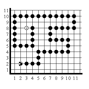 Alkutilanteessa KAREL on pisteessä (2,2) itä. Tästä