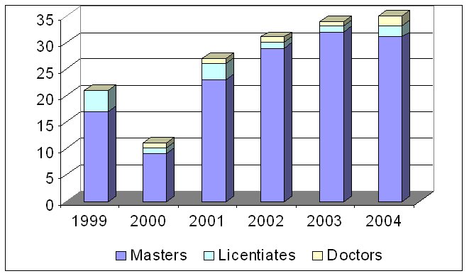 - 14 PhD, 4 PhLic and 41 MSc